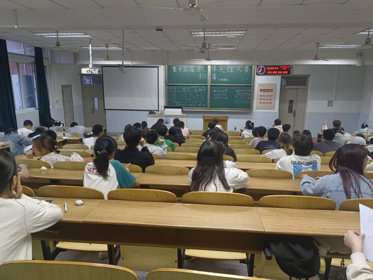 (通讯员 王雪霏)为激发学生的学术热情,搭建思想碰撞的学术交流平台,申搏精心组织的数学定理大赛于5月8日拉开初赛帷幕,并于5月10日下午和晚上分别举行复赛及决赛。本次大赛通过多元赛制和深度探讨,旨在引领同学们探索定理背后的数学魅力,开启一场知识与智慧的盛宴。院长张涛、院党委副书记谷军、全体辅导员,教师代表朱建伟、熊骏、郭金海、汪春花老师,以及全体 22 级、23 级参赛学生共同参与了此次活动。