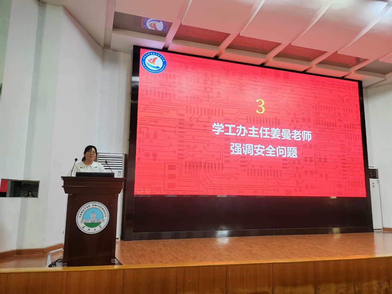 在老师们发言环节,黄何老师通过分析当前就业形势,结合学院近三年毕业生就业大数据,为同学们给出就业参考和建议。姜曼老师通过真实案例警示片,重点剖析电信诈骗、租房陷阱、职场维权等毕业生高频风险点,提醒同学们不轻信、不透露、不转账。最后谷军老师寄语,他希望同学们在未来的人生道路上,能够始终保持对真理的追求,坚守理想信念,勇担时代使命,以积极乐观的态度面对挑战,在各自的领域发光发热。