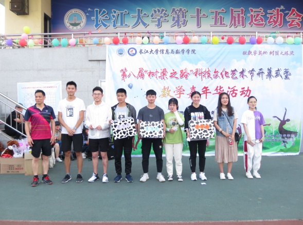 本场活动主要以开展数学游戏项目形式进行,开设有 “同心传送带”、 “绑腿跑” 、“拍三令”和“珠联璧合”等11个游戏项目,共21个参赛队伍参加。活动过程中,同学们参与热度高涨,一次次将活动气氛推向高潮,其中有考验参与者默契和协作精神的“你画我猜”,有考验数学口算与心算能力的“24点”,还有考验逻辑与耐心的“鼓动人心”等,种类多样的趣味数学游戏吸引了全校众多同学前来参加。最后,活动以团队积分的方式送出奖项一、二、三等奖各1个,参与奖若干,领导嘉宾们分别为各支获奖队伍颁奖并合影留念。