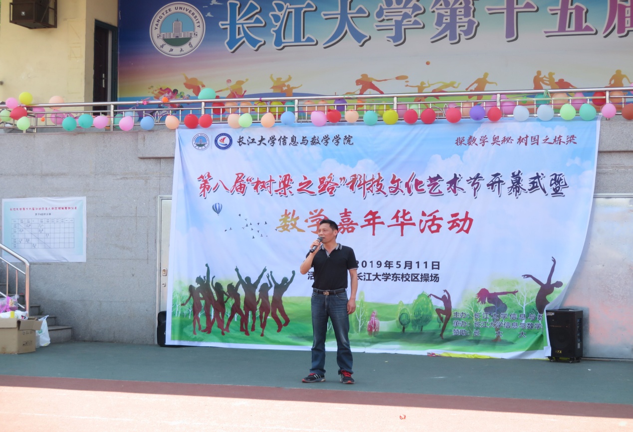 (通讯员 汪志东) 芳菲五月,花团锦簇,绿树成荫。为营造浓厚数学文化氛围,开拓广大学生数学视野,5月11日下午,申搏第八届“树梁之路”科技文化艺术节开幕式暨数学嘉年华活动在东校区田径场隆重举行。院党委书记高迎斌、副书记袁海山、院团委书记严星、辅导员钟赛、院系教师代表及长大大数据赞助商彭斌出席活动开幕式。