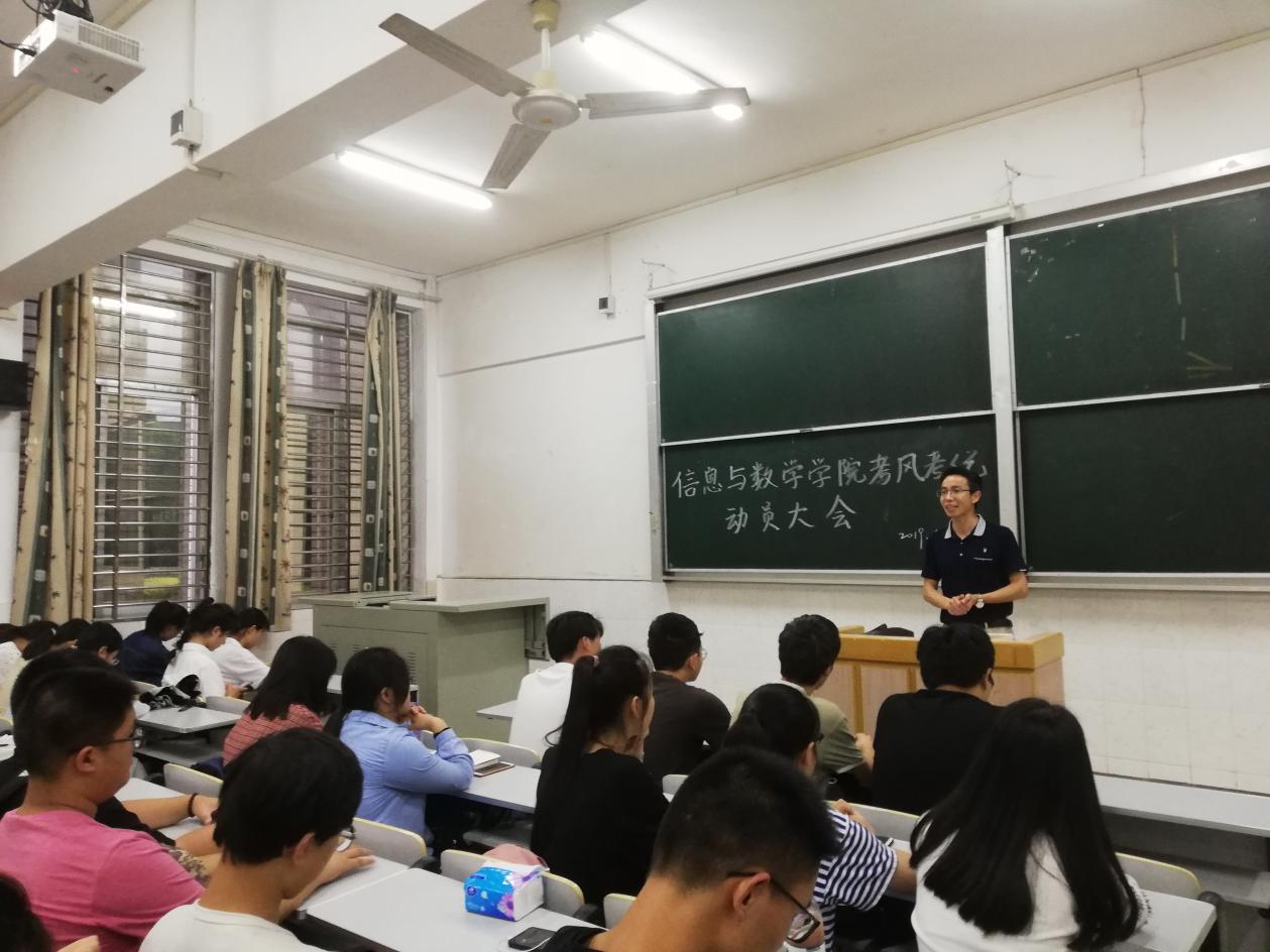 (通讯员涂楷丽)为了营造良好的考试氛围,让同学们以积极的心态去迎接英语四级考试,申搏于6月12日下午六时三十分,在西校区五教115室召开了“考风考纪动员大会”。参加本次会议的有院党委副书记袁海山、辅导员钟赛以及全体大一学生。