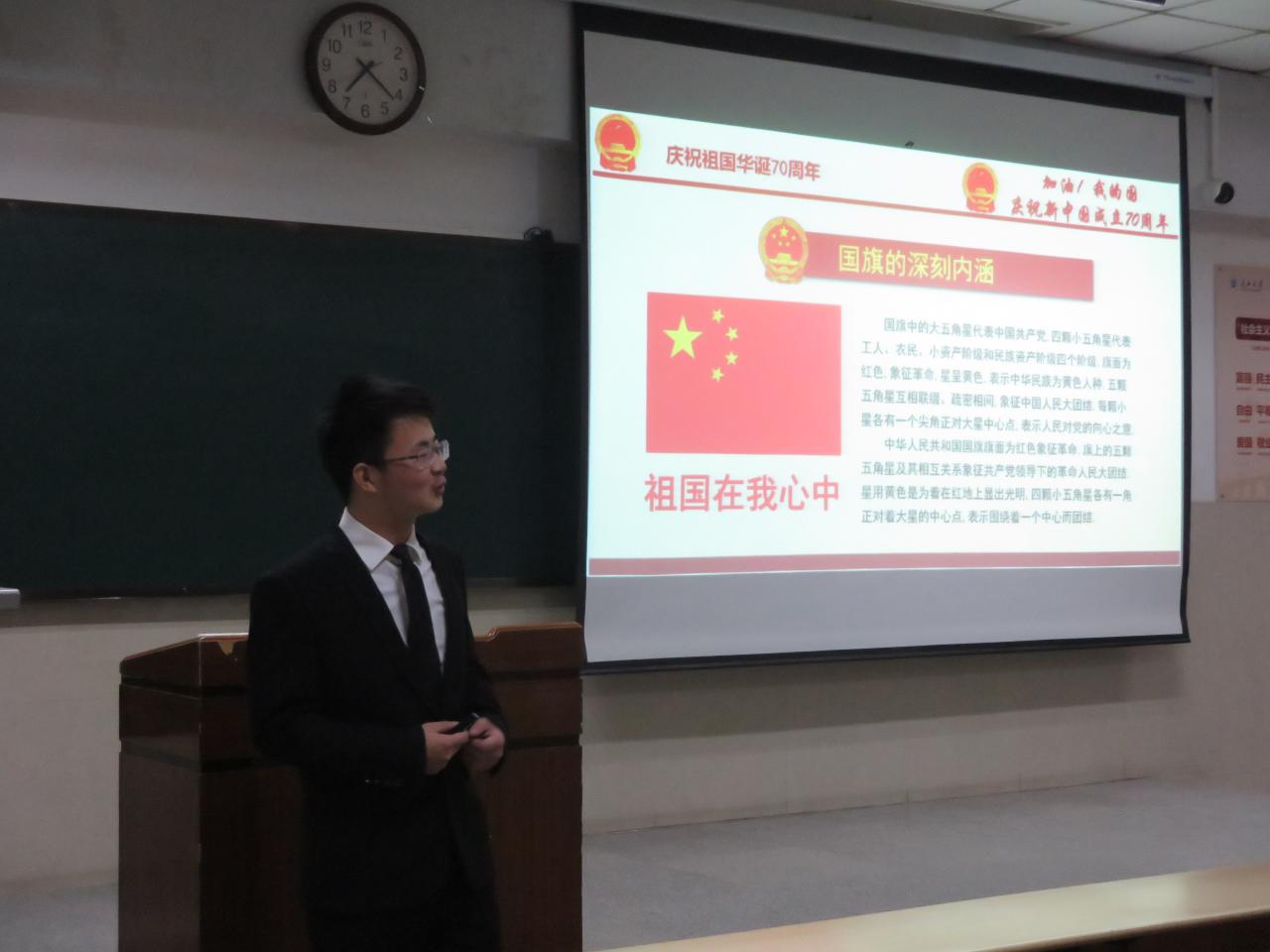 (通讯员 王楚楠)弘扬爱国奋斗精神,建功立业新时代。10月20日晚7:00,申搏在东校区12教202教室开展“庆祝新中国成立70周年”学习活动,2016级、2018级本科生参加。本次学习活动由2018级应用数学专业研究生沈马锐主讲。