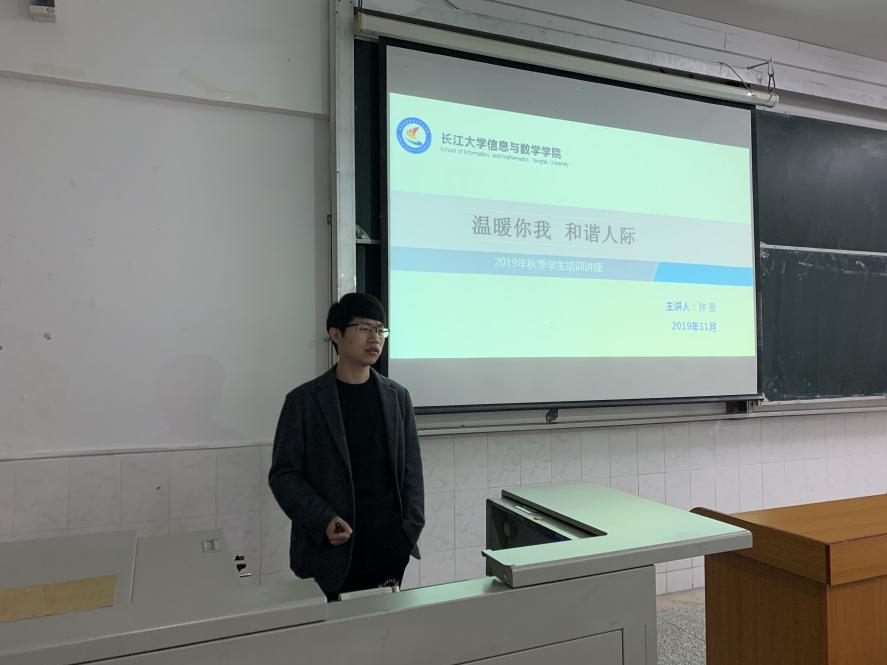 (通讯员 刘睿)为了普及心理健康教育知识,营造良好的学习氛围,申搏于11月26日晚上7:00在西校区五教215室召开“新生骨干心理培训讲座”,本次讲座由申搏辅导员钟赛主讲,申搏全体2019级班委、寝室长及学生会成员参与培训。