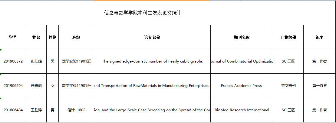 根据《sunbet申搏官方网站单项奖学金评选细则》,经学生申报、学工办审核、院党政联席会议讨论决定表彰本科生期间发表文章的个人,现将拟获本科生科研奖励名单公示如下: