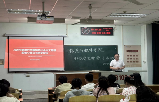 (通讯员 冯天悦)19日下午7时sunbet申搏官方网站在13教B109召开了4月支部主题党日活动。本次活动由院党支部书记吴朝晖主持,信数学院全体党员共同参加此次活动。