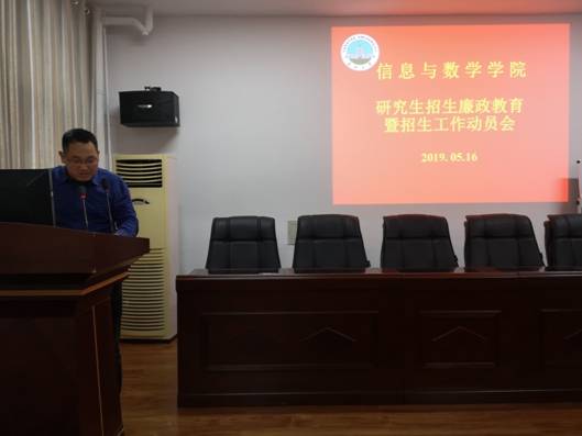 院长助理李治传达了校研究生工作会议精神,通报了全国研究生考试和复试工作中其他高校存在的违规违纪行为及处理情况,强调要从中汲取教训、引以为戒,要求申搏研究生工作严格执行上级和学校文件,遵守程序,坚持标准,工作细致,办事严谨,做好保密,确保申搏研究生考试和相关各项工作合规合纪合法。党建秘书卜富清带领教职工学习了《习近平:在纪念五四运动100周年大会上的讲话》《习近平:在深入推动长江经济带发展座谈会上的讲话》,并向大家解读了《中华人民共和国国监察法》。党委副书记袁海山传达了《sunbet申搏官方网站第二十个党风廉政建设宣传教育月活动方案》,并做了党风廉政建设专题报告。