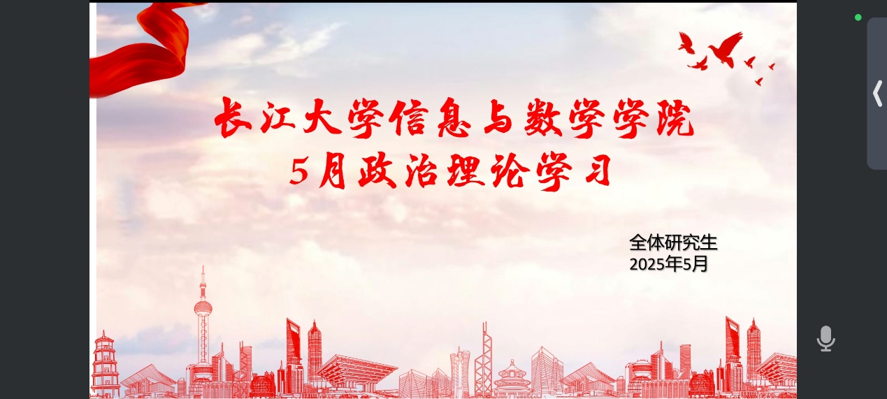 (通讯员 俞俊杰)5 月 21 日,sunbet申搏官方网站全体研究生于线上开展政治理论学习活动,深入学习近期重要会议精神及相关政策文件,明确自身使命担当,为投身国家建设夯实思想基础。此次活动由研究生会组织部鲍泽智主持。