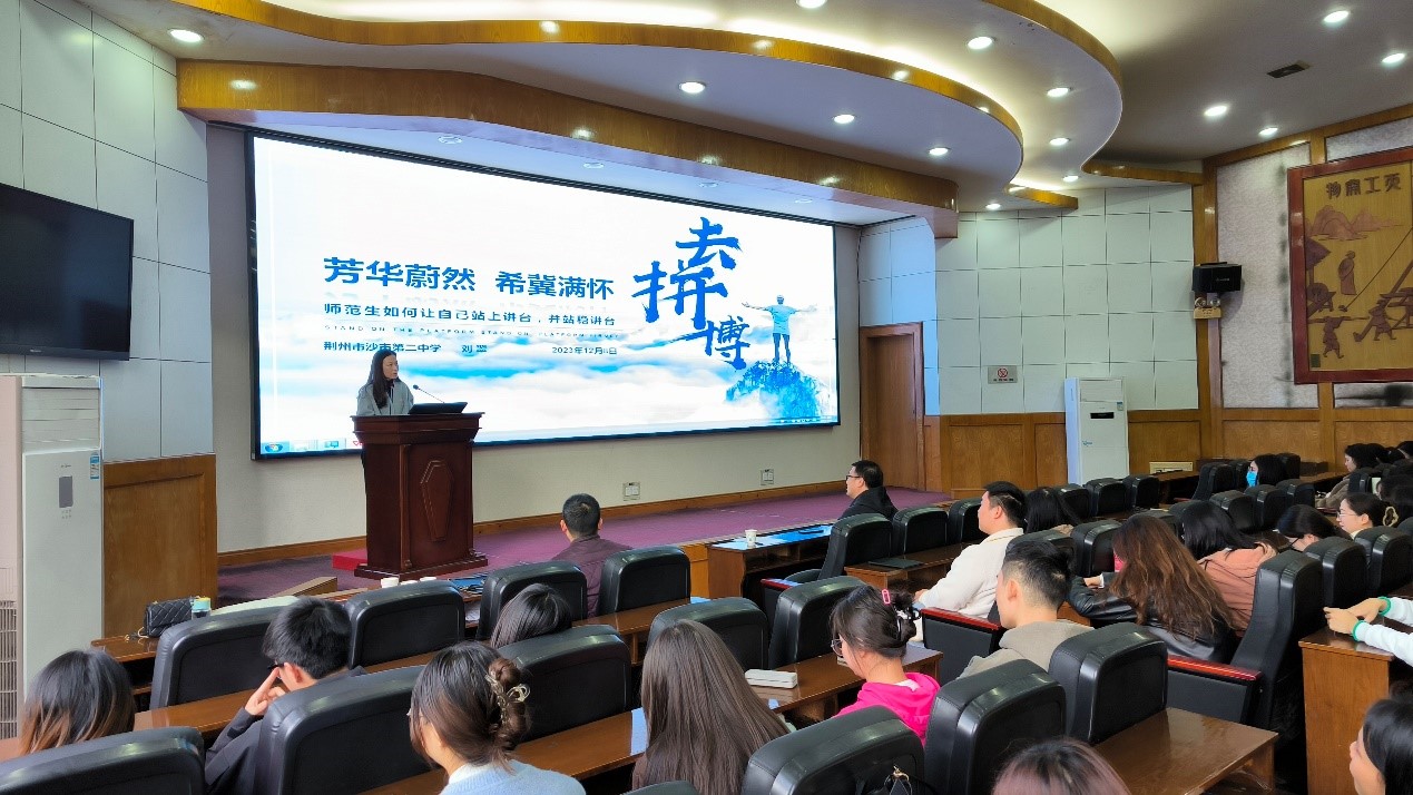 12月8日下午,荆州市沙市第二中学校长刘翠应sunbet申搏官方网站邀请做客“长大20年”学术论坛,做“芳华蔚然 希望满怀---师范生如何让自己站上讲台,并站稳讲台”主题报告。报告在11教报告厅举行,sunbet申搏官方网站院长张涛主持会议,学院副院长李向军及相关教师参加了报告会,师范21级160多名师范生及部分学科教学硕士聆听了报告。