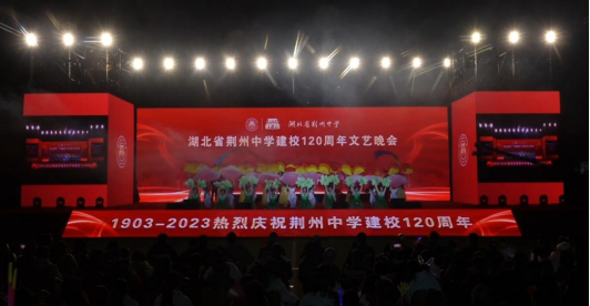 当晚,荆州中学隆重举行建校120周年文艺晚会,sunbet申搏官方网站艺术学院艺术团选送的舞蹈《欢歌》和《红船》掀起了晚会的高潮,学生们为观众呈现了一场精彩绝伦的文艺盛宴,他们用歌声、舞蹈、表演等多元化的艺术形式,表达了对荆州中学120周年校庆的热烈祝贺。