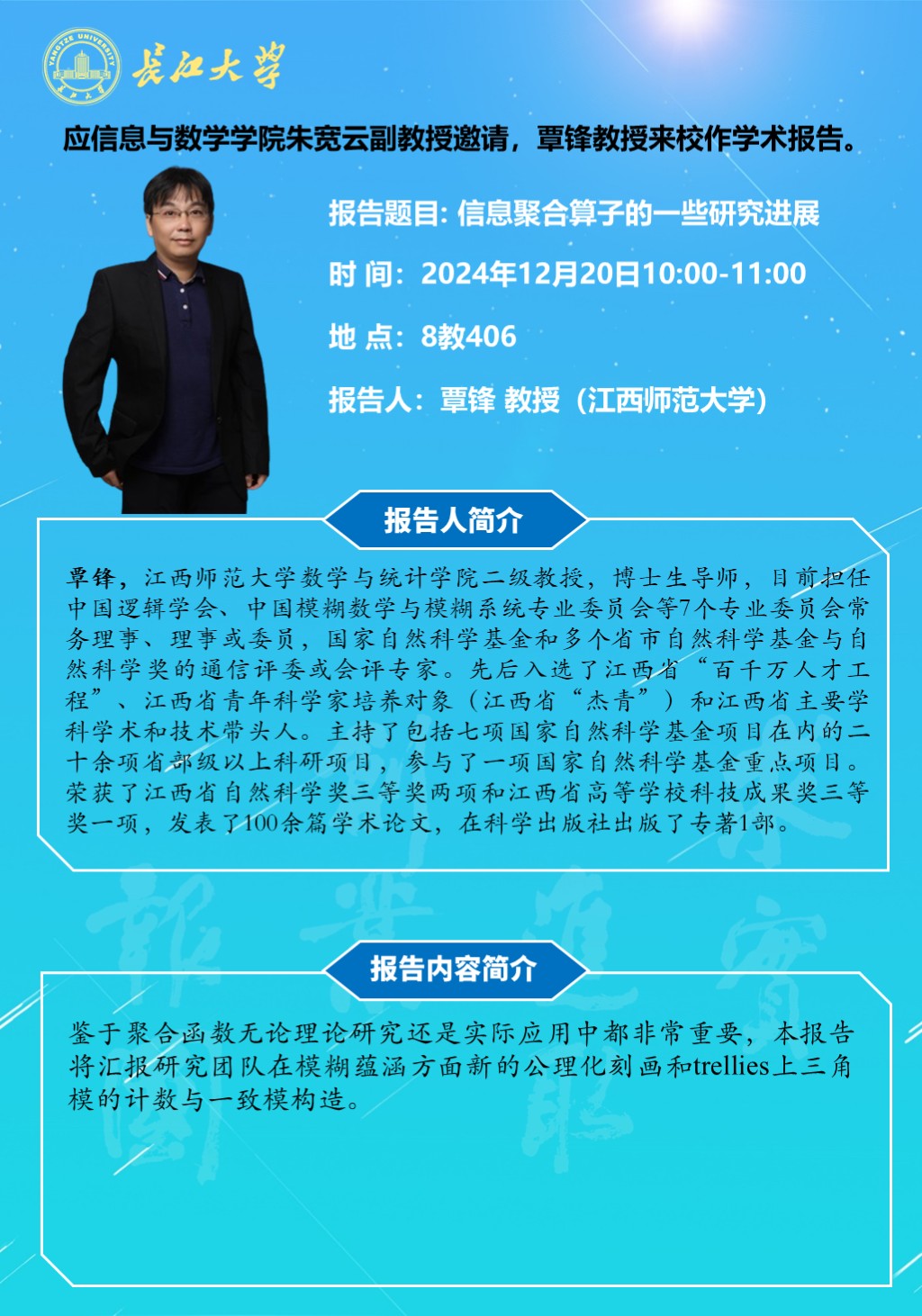 报告人 覃锋 教授(江西师范大学) 报告时间 2024年12月20日10:00-11:00