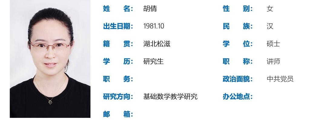 胡倩,女,1981年10月出生,硕士研究生,讲师。主要从事高等数学教学研究,曾获sunbet申搏官方网站第二届青年教师讲课比赛一等奖,湖北省第六届高校青年教师教学竞赛理科组三等奖,sunbet申搏官方网站第八届教学工作突出贡献二等奖,荣获2018-2019学年“任大龙奖教金”,多次荣获sunbet申搏官方网站教学优质奖。